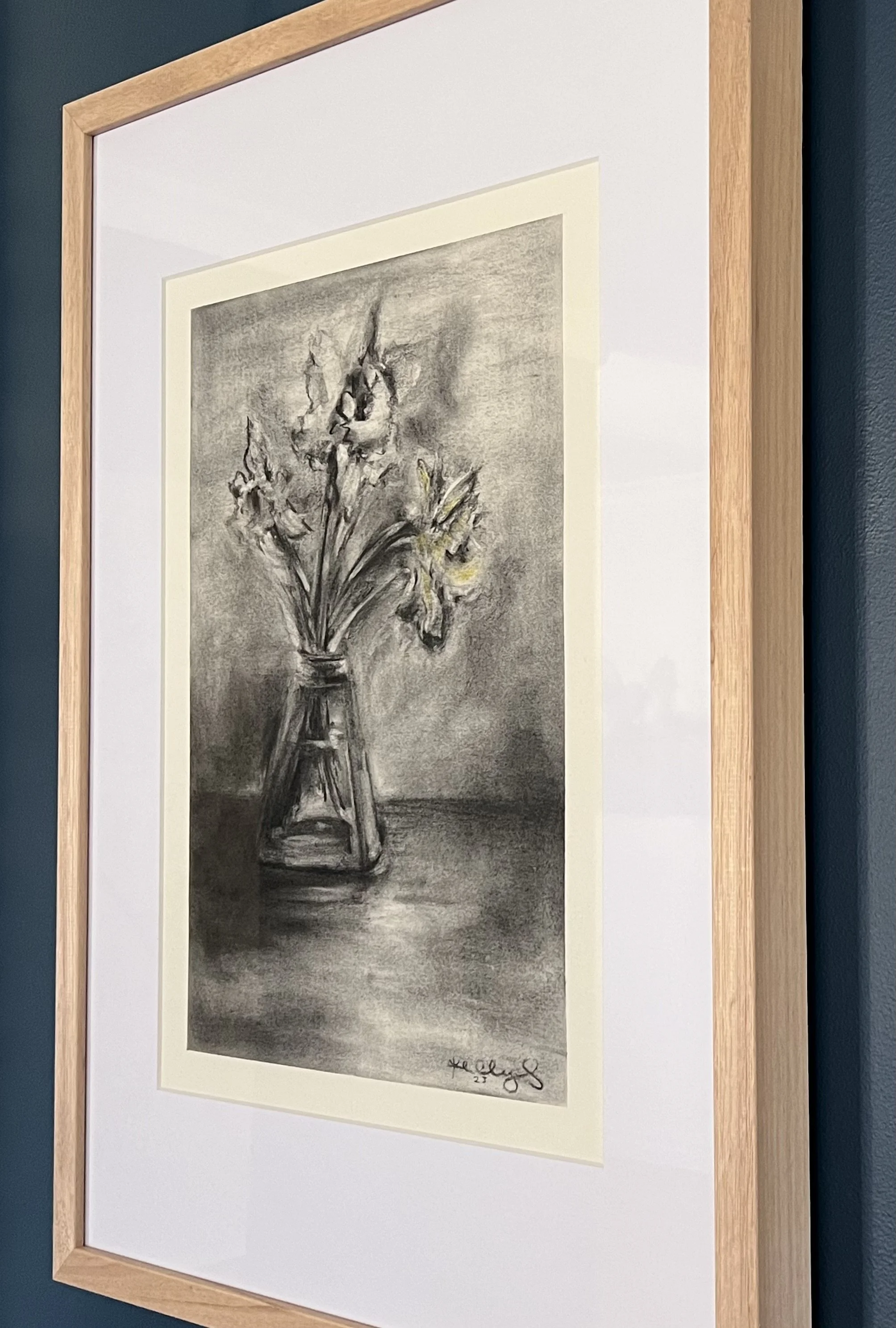 Freestyle sketch of a floral arrangement in charcoal. Daffodils were sourced from my garden & brought inside to create an expressionistic, still life composition.